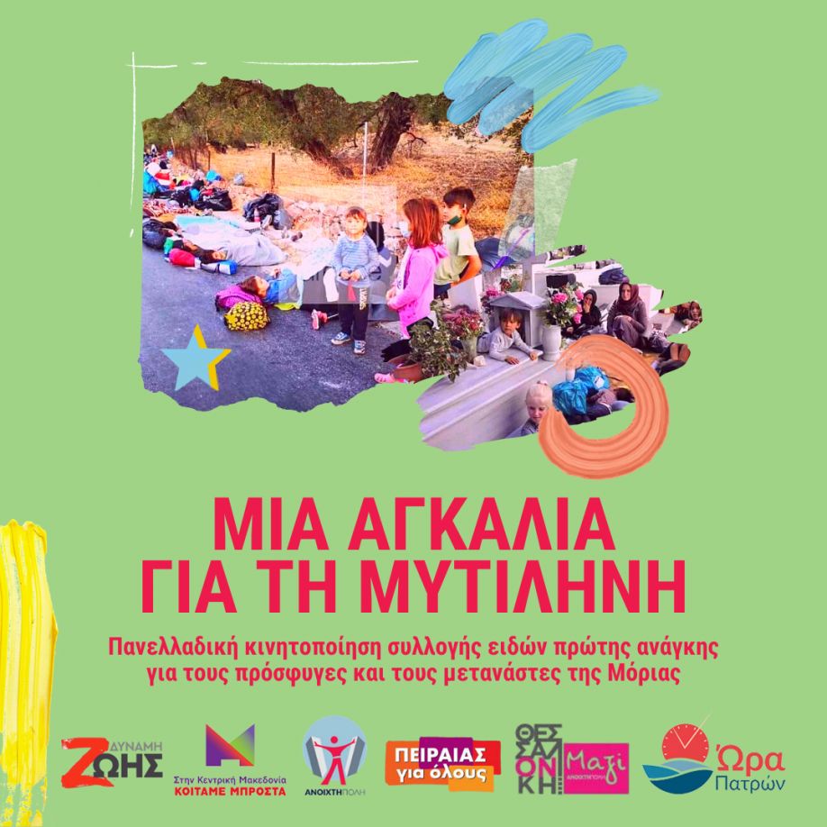 Μια αγκαλιά για την Μυτιλήνη. Κοινό Δελτίο Τύπου και Πρακτικές Οδηγίες. “Δύναμη Ζωής”-Αττική, “Κοιτάμε Μπροστά”-Κεντρική Μακεδονία, “Ανοικτή Πόλη”, “Πειραιάς για Όλους”, “Θεσσαλονίκη Μαζί”, “Ώρα Πατρών”