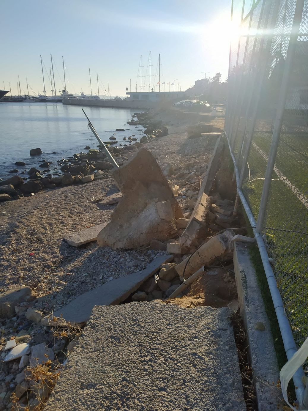 Όταν πιάνει ο νοτιάς και κάνει ζημιές, έρχονται και ξανάρχονται οι δημοτικές υπηρεσίες και ρίχνουν πάλι τσιμέντα για να ξαναφτιάξουν τις σπασμένες διαμορφώσεις και κατασκευές. Ξανάρχεται ο νοτιάς, νέα τσιμέντα και η θάλασσα από το ’70 ως σήμερα ξερνάει τσιμέντα, σπασμένα μάρμαρα, κεραμίδια νεοκλασικών και σκουριασμένες βέργες. Αυτή ήταν άλλοτε η πιο όμορφη ακτή του Πειραιά.