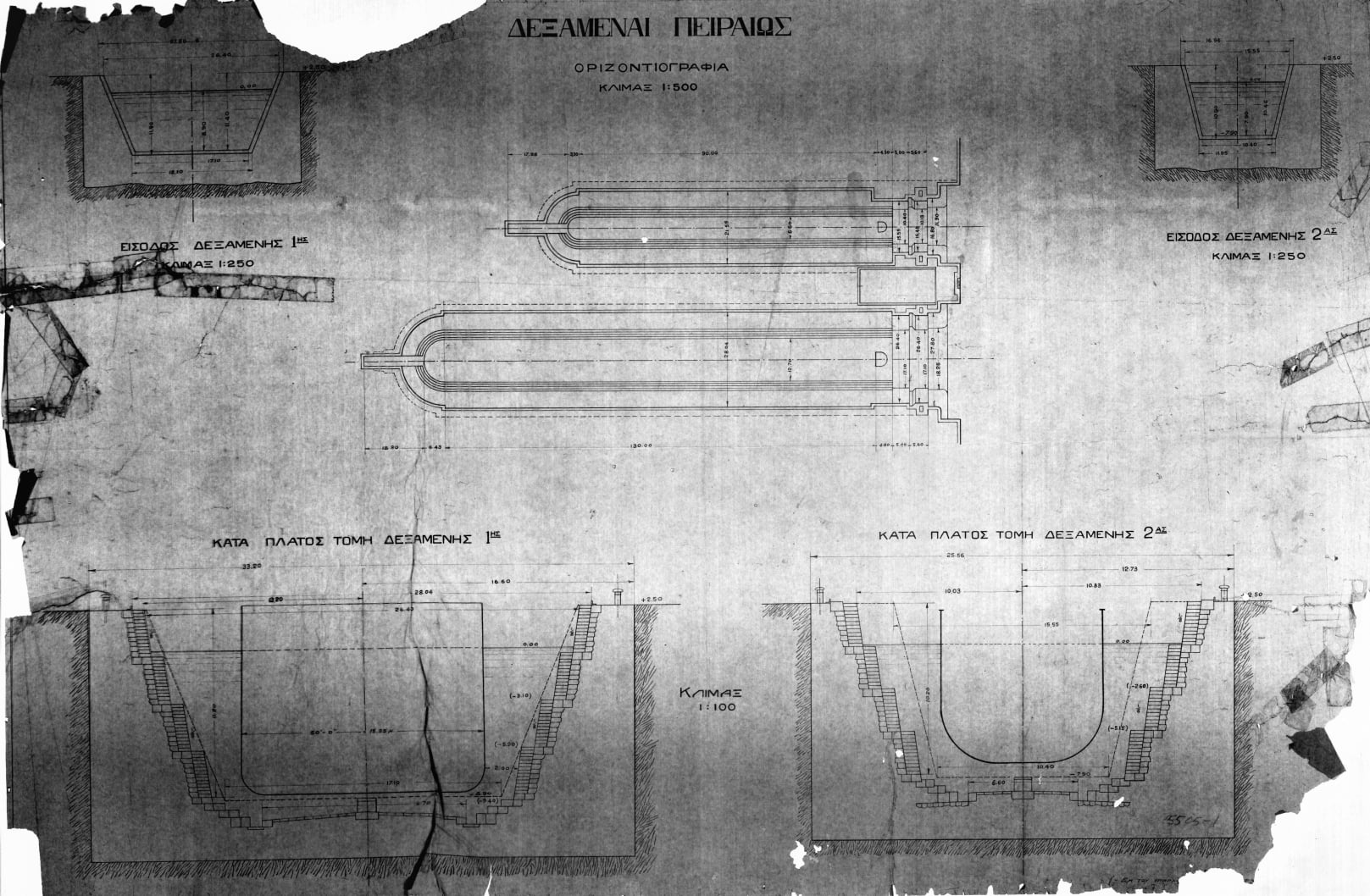 Τα πρωτότυπα σχέδια των Μόνιμων Κτιστών Δεξαμενών στην προβλήτα Βασιλειάδη. Κατασκευάστηκαν το 1898-1912. Αρχείο ΟΛΠ.